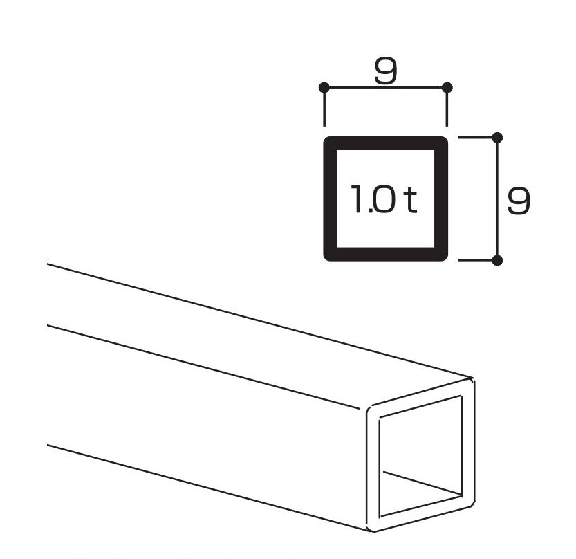 サイズ 断面9㎜x9㎜ 板厚1.0㎜